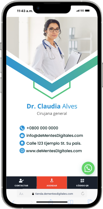 Botones interactivos para que te contacten por Teléfono, WhatsApp, Mail.