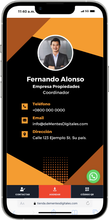 Botones interactivos para que te contacten por Teléfono, WhatsApp, Mail.